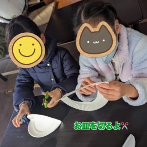 紙皿を半分に折ってくり抜いたり、職員やお友達に協力してもらったりとみんなそれぞれ工夫をしながら頑張っていましたよ