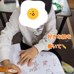 その後は、みんなそれぞれ絵を描いたり、画用紙を貼ったりして自分好みのリースになるように工夫を重ねていました