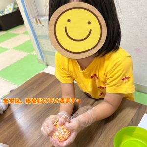 「白いところも剥く方がいいかな?」などみんなで話ながら、協力してたくさんのみかんを剥いてくれました!