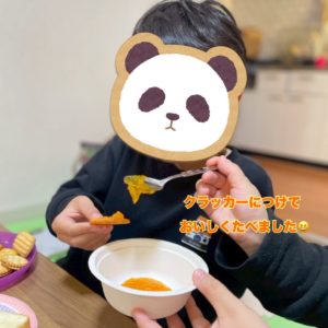 完成すると、パンやクラッカーを用意して、ジャムをつけて食べました!