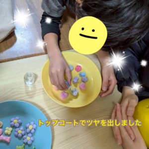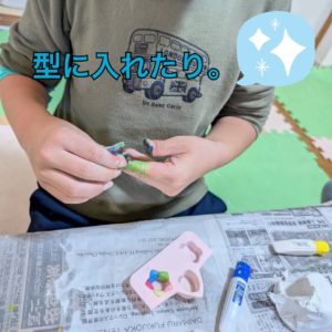 オリジナルの色が出来たら、形を作ります。好きな形に作ったり、型に入れ込んだり、個性があふれていました![]()