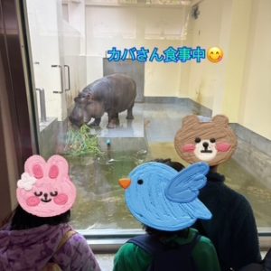 ゾウ、トラ、キリン、カバなど数種類の動物たちを間近で観ることができて興奮する児童たちでした!お名前を呼ぶと反応してくれる動物もいて自分が呼んだことが通じてうれしい気持ちにもなったようです![]()