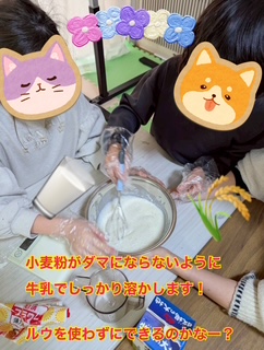 皆で協力しながら作業を進めていき、シチューの完成![]()