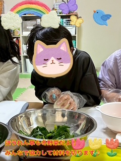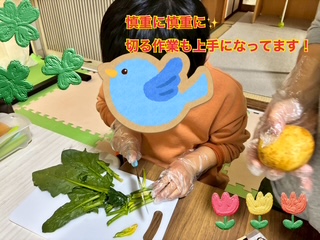 皆で協力してじゃがいも・にんじん・玉ねぎ・ほうれん草・ブロッコリー、カブを切りました![]()