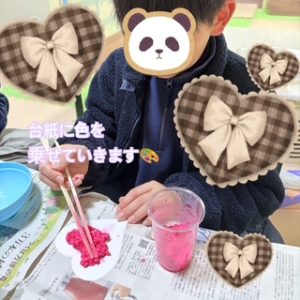 先日はバレンタインデー当日だったので家族の好きな人に向けて思いを伝えるメッセージカードづくりをしました