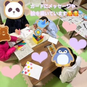 いつものようにみんなでお昼ご飯を食べて午後からメッセージカードを作りました!