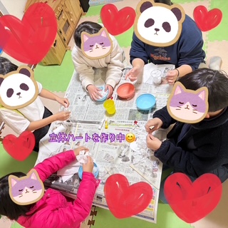 まず立体の💖づくりを行いました。