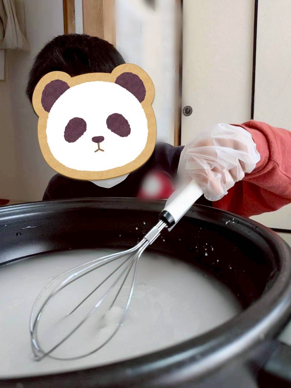 鍋に片栗粉、水、砂糖を入れて温めながら混ぜていくと・・・なんと、固まりました!![]()